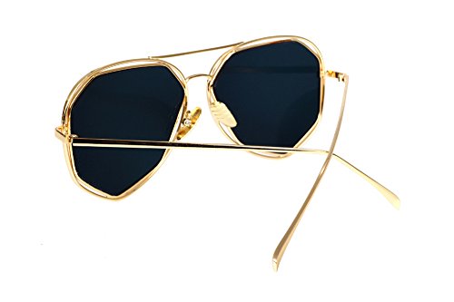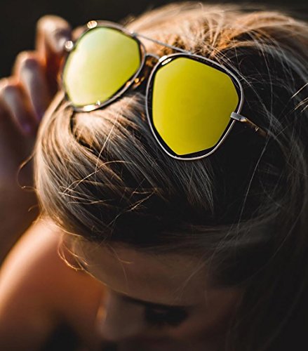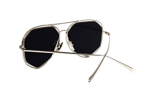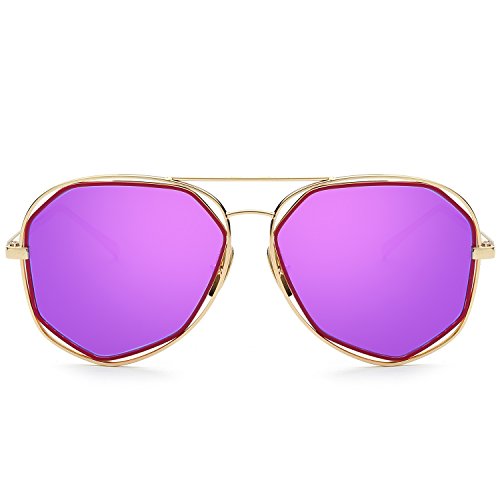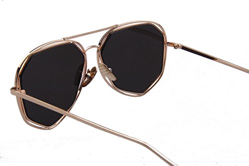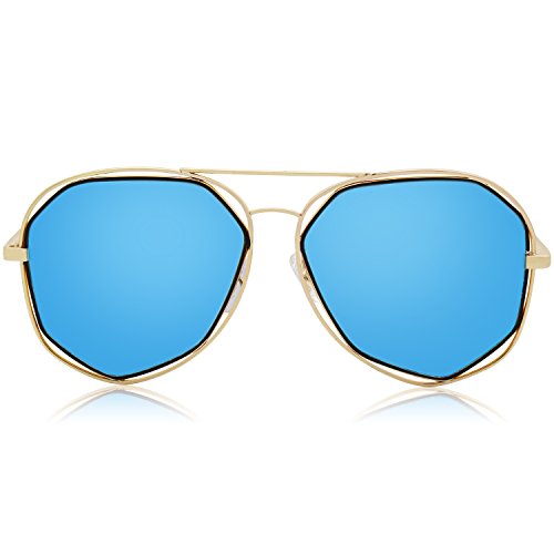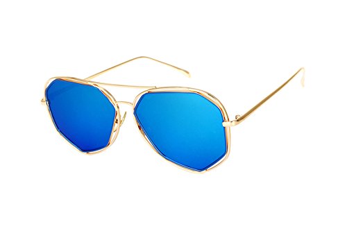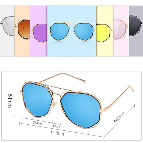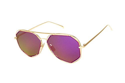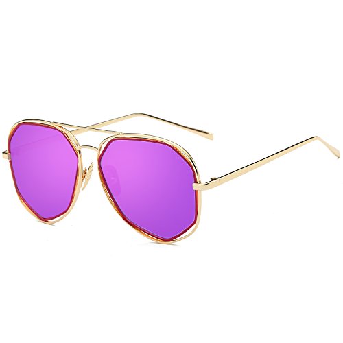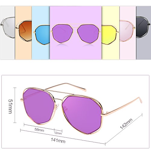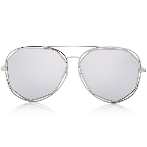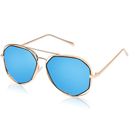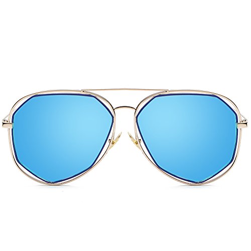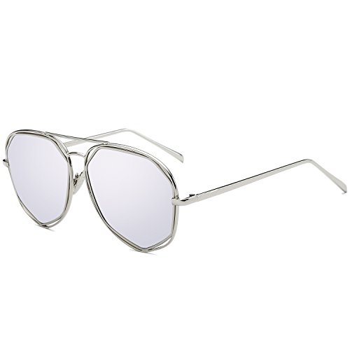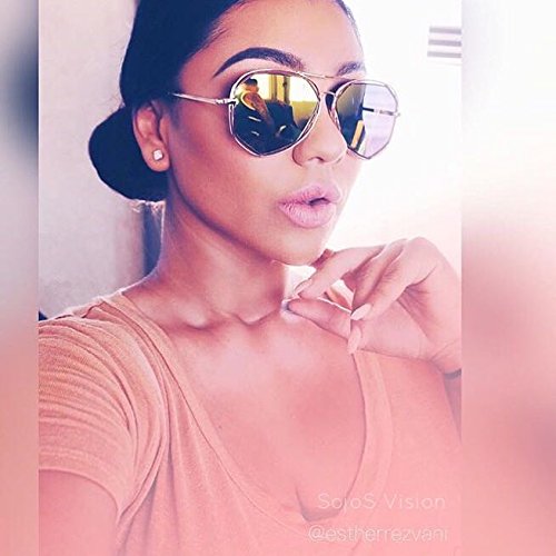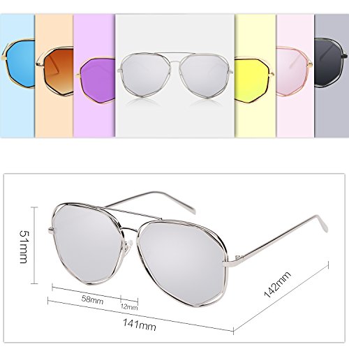 | SojoS® Fashion Metal Frame Flat Mirrored Lens Sunglasses |