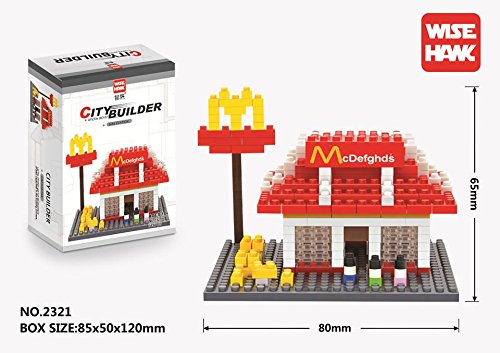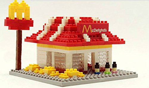 -. Binding : Toy -. Brand : Kitz Shop -. Feature : Micro-sized building blocks will enable you to execute even the finest details like never before / A 3D work of art that fits in the palm of your hand, create details with assorted sizes and colored pieces. / Material: Non-Toxic Plastic, Block type: Diamond blocks / Set of micro-sized building blocks, come with an assembly instruction / Look like Mc donald restaurant -. IsAdultProduct : 0 -. Label : KitzShop -. Manufacturer : KitzShop -. PackageQuantity : 1 -. ProductGroup : Toy -. ProductTypeName : TOYS_AND_GAMES -. Publisher : KitzShop -. Studio : KitzShop -. Title : Mcdefghd's Restaurant (Mcdonald Restaurant) - Toy Building Blocks Mini Figure Nanoblock Lego Style Real Hobby Series