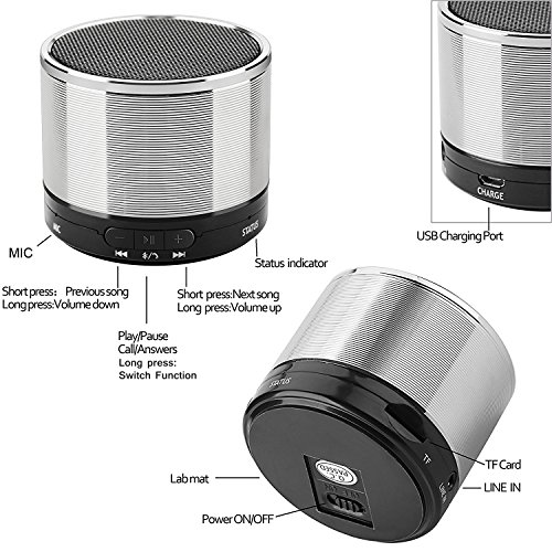 Whirldy portable Bluetooth Speaker mini wireless speakers, Car Speakerphones, Built-in Microphone for Calls, Enhanced Bass Aluminum Silver