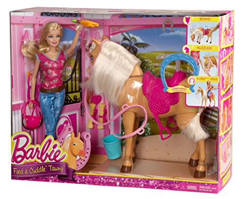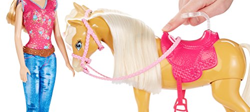 Features:Barbie doll and Tawny horse are ready to ride!Place Barbie doll into the saddle, and move Tawny horse along as they set off on their rideFeeding Tawny horse carrots or hay - she can really bend to pick them up!Tawny horse nuzzles Barbie doll to say thank you - simply push her saddle to activate the motion!Barbie doll looks casually cool in faded jeans, floral print t-shirt, riding boots and a riding helmet in signature pink- Recommended Ages: 3-10 years