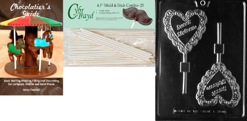 Cybrtrayd 'Sweet Sixteen Lolly' Letters and Numbers Chocolate Candy Mold with 25 4.5-Inch Lollipop Sticks and Chocolatier's Guide