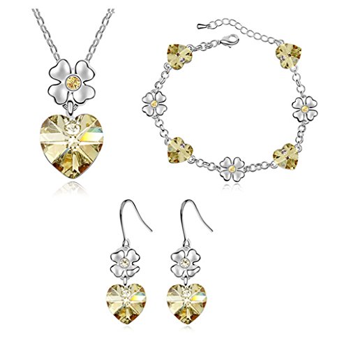 -. Binding : Jewelry -. Brand : Gift for Girls -. Department : womens -. Feature : The Jewerly are set with REAL Swarovski Elements Crystal / Made of cooper and plated with white gold to add resistance to tarnish / Intricate high polish creates glamorous reflections and adds a luxurious look to this Jewelry Set / The necklace is 16 inches long with a 2 inch adjustable chain tail.The necklace pendant measures 0.39 inch(1.0cm) wide and 0.74 inch(1.9cm) high / The Earrings measures 0.39 inch(1.0cm) wide and 0.78 inch(2.0cm) high. Bracelets Perimeter 16cm+4cm -. Label : Gift for Girls -. Manufacturer : Gift for Girls -. ProductGroup : Jewelry -. ProductTypeName : FASHIONNECKLACEBRACELETANKLET -. Publisher : Gift for Girls -. Studio : Gift for Girls -. Title : Silver-tone Flower Love Heart Swarovski Elements Jewelry Set, Australia Import Crystal Necklace, Bracelets, Earrings Ensemble Fashion Jewelry