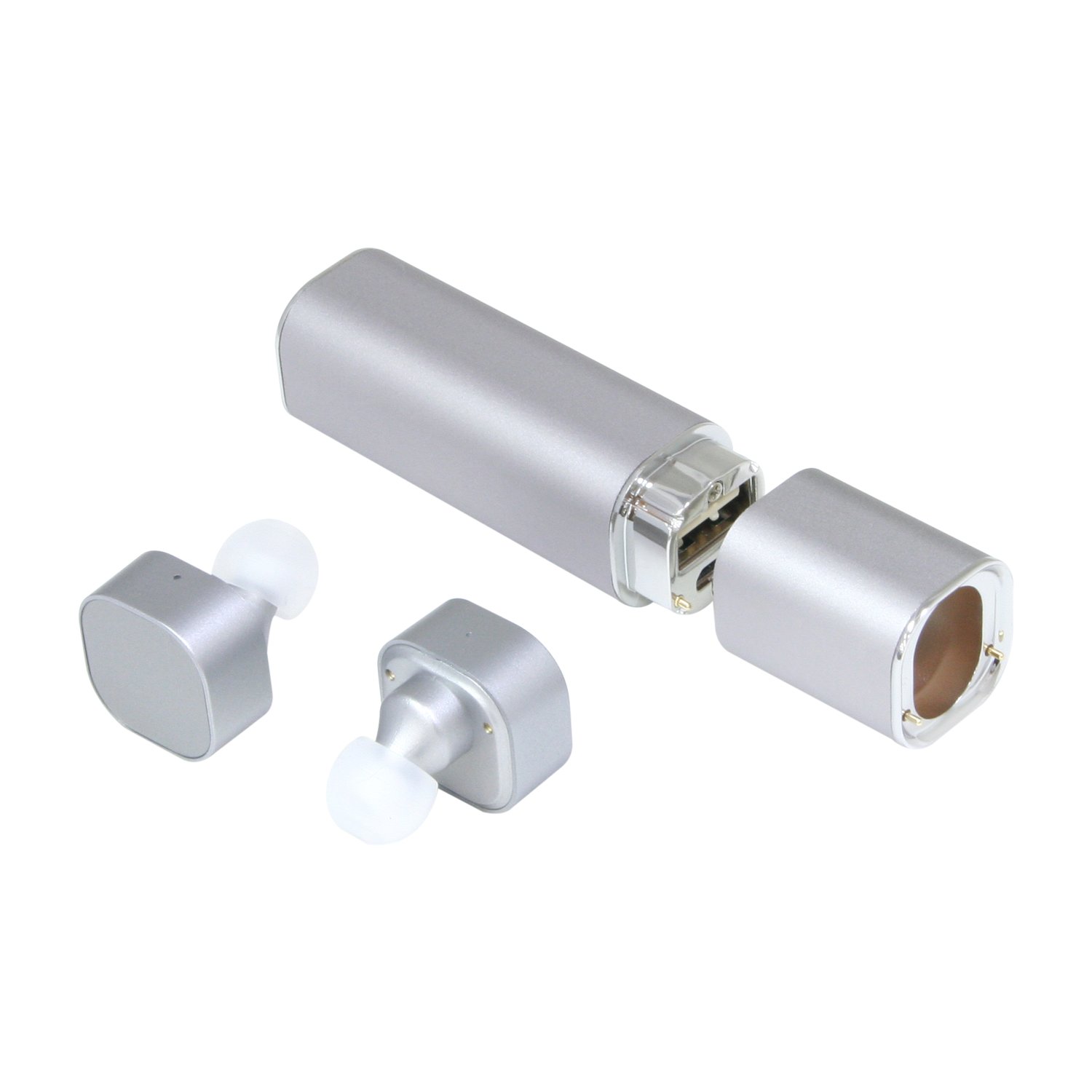 左右独立型の完全ワイヤレスイヤホン ハンズフリー対応(通話OK) ノイズ軽減技術CSRチップ(CSR64110)搭載 導電性携帯充電システム搭載 対応機種:Bluetooth搭載機器 バージョン:Bluetooth 4.2 付属1:イヤーキャップ3サイズ