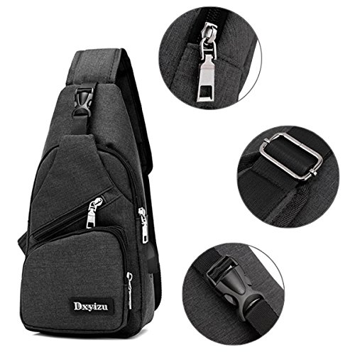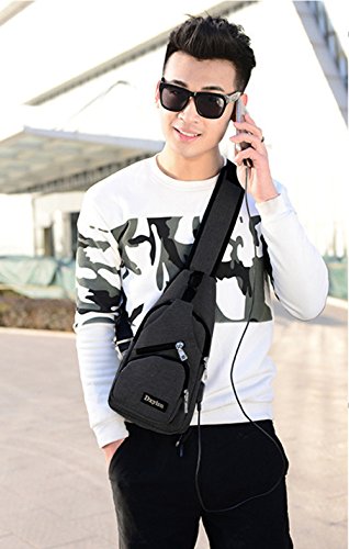 Chest bag for men with external USB Interface: You can conveniently charge your phone, tablet and other devices.Please note:the USB cable is suitable for your battery,you need to plug your phone charger cable to the outside end.