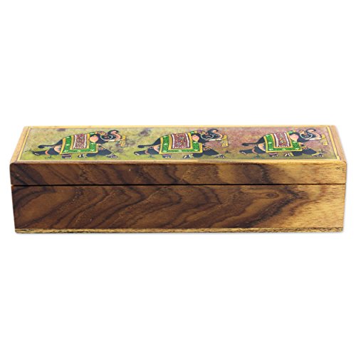 NOVICA "Emerald Elephant Parade" Hand-Crafted Teakwood and Soapstone Jewelry Box