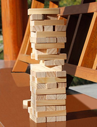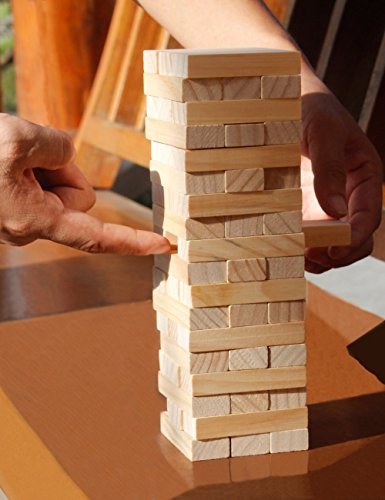 A Fun Game For All Ages And Every Occasion Players take turns removing the block from the tower and try not to let the tower fall over, because if the tower tumble down, you will lose the game. This game is exciting and challenging, keeping the suspense building until the tower tumbles. Providing fun for the whole family of all ages! Adults and children both will enjoy playing this game together. Lifetime replacement warranty This Tumbling Timbers game is made of pine wood, highest quality and durability. We'll replace it with a new one if there is any quality problem, make you 100% satisfied. 0