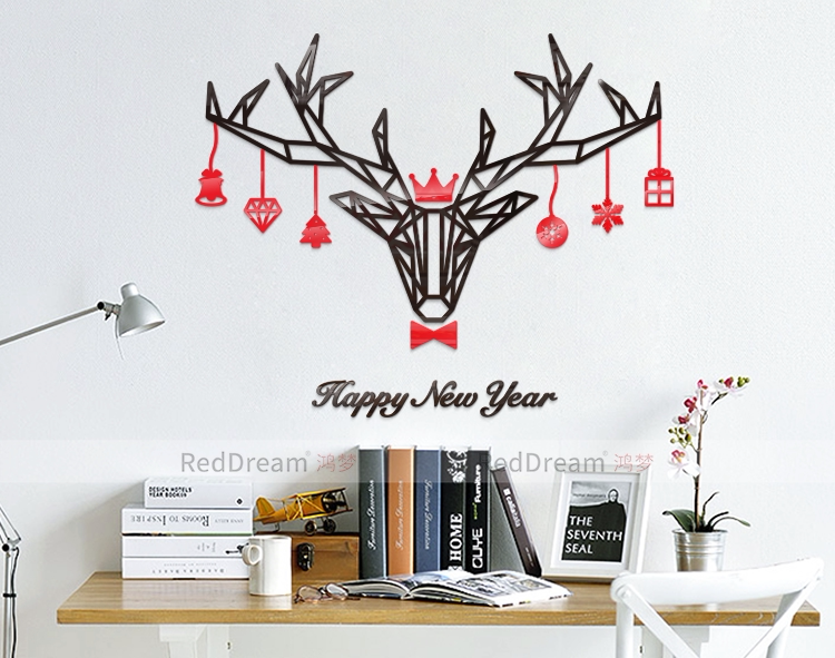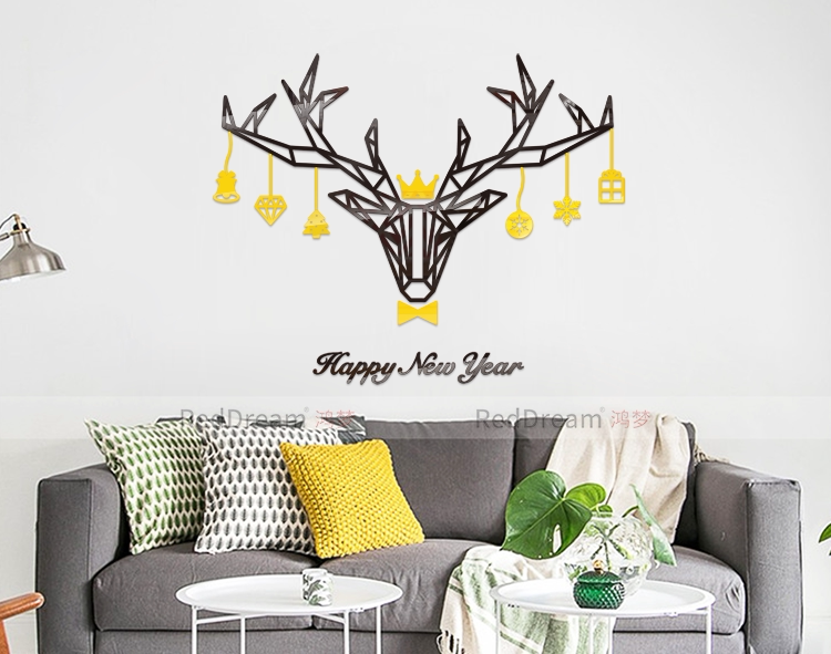 几何麋鹿3D立体抽象艺术北欧风圣诞节日客厅书房装饰创意背景墙贴