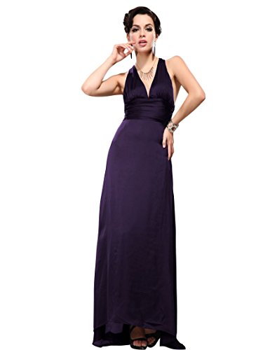 Be red carpet ready in this sexy evening dress. This stunner features a gorgeous trailing silhouette that is enhanced by the plunging V-neck in front and the sexy open, cross strap design in back