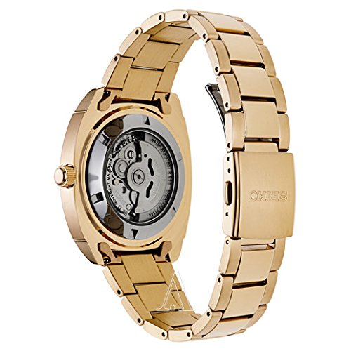 -. Binding : Watch -. Brand : Seiko -. Color : Gold Tone -. Department : mens -. EAN : 0029665176684 -. Feature : Gold-tone watch featuring tonneau-shape case with skeleton back and sunray dial with day/date window / 43.5 mm stainless steel case with Hardlex dial window / Automatic self-winding movement with analog display / Stainless steel bracelet with fold-over clasp and double-push-button safety / Water resistant to 50 m (165 ft): In general, suitable for short periods of recreational swimming, but not diving or snorkeling. -. Label : Seiko -. Manufacturer : Seiko -. Model : SNKM98 -. MPN : SNKM98 -. PackageQuantity : 1 -. PartNumber : SNKM98 -. ProductGroup : Watch -. ProductTypeName : WATCH -. Publisher : Seiko -. ReleaseDate : 2014-06-26 -. Studio : Seiko -. Title : Seiko Men's SNKM98 Gold-Tone Stainless Steel Automatic Watch -. UPC : 029665176684