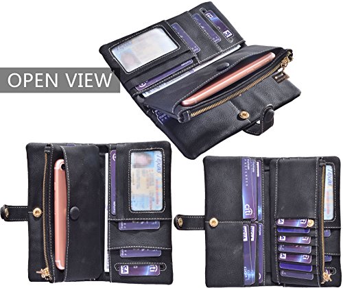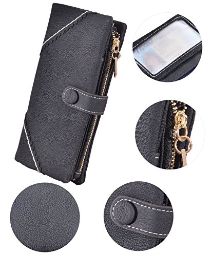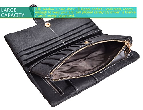 - LARGE CAPACITY: 1 ID window + card slots + 1 zipper pocket + cash slots, roomy enough to keep your 5.5" cell phone/ cards/ ID/ driver’s license/ cash/ receipt organized.