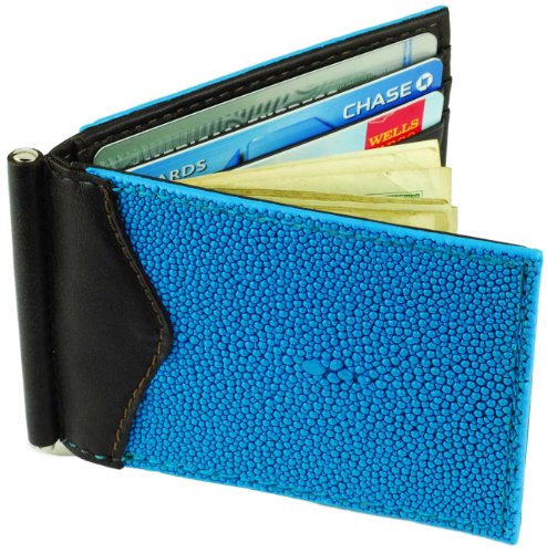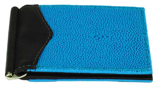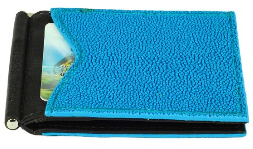 -. Title : Money Clip Wallet, Stingray Leather, ID Holder, 3 CC Slots, Turquoise/Brown