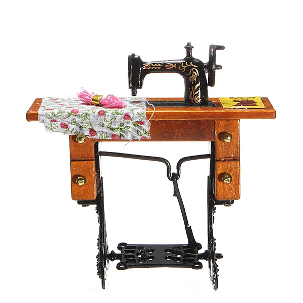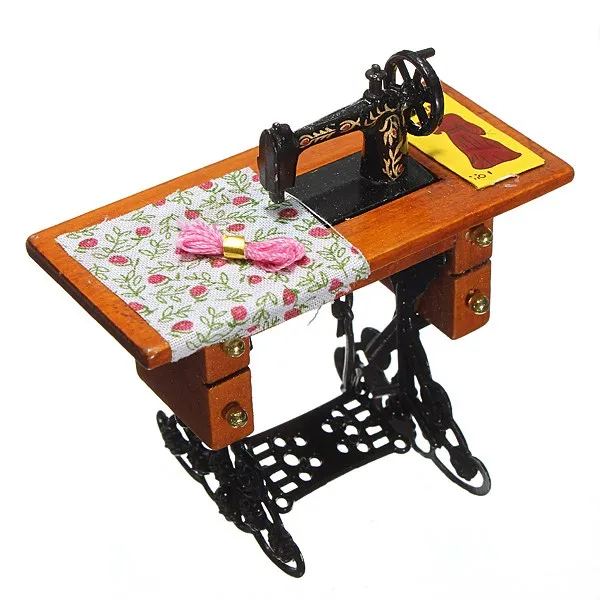 1:12 Pretend Toy Vintage Miniature Sewing Machine Furniture Toys for Barbie Doll House Decor Retro Children Toys Accessories