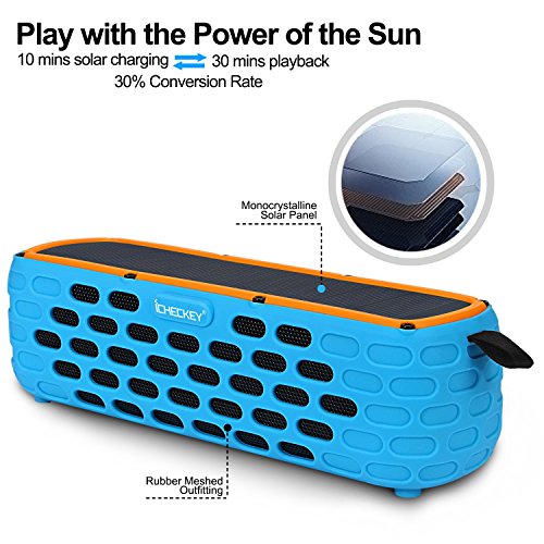 -. Title : Solar Bluetooth Speaker - [Fall 2017 Upgrade Version] ICHECKEY IPX5 Waterproof Solar Powered Portable Outdoor Wireless Speaker for Beach, Shower & Home