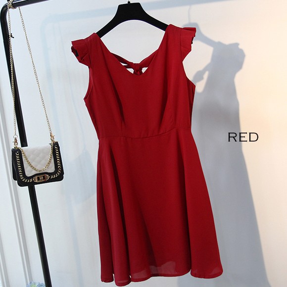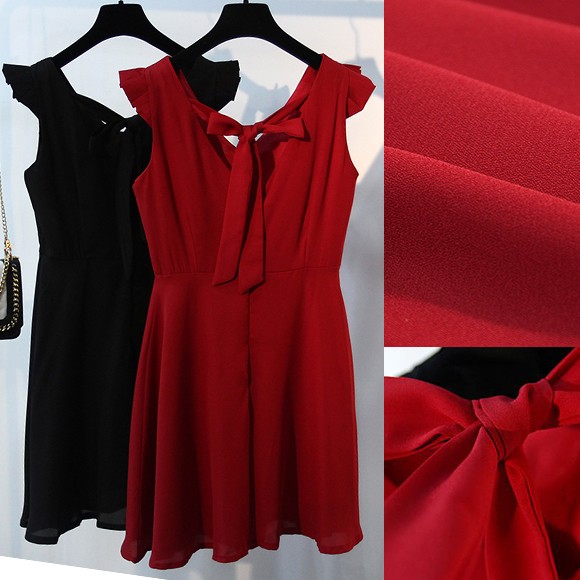 柔らかなシフォンと背面のリボンがキュートなミニワンピース♪