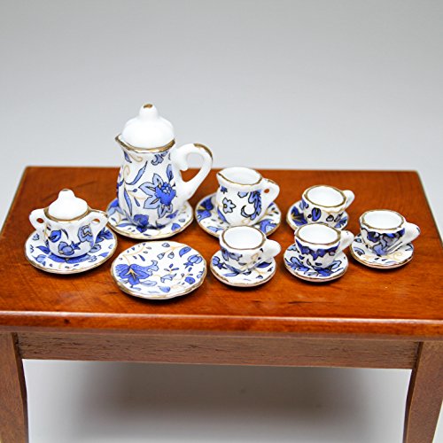- Title : 1:12 16PCS Blue Flower Patten Porcelain Coffee Tea Cup Miniature Dollhouse Gift