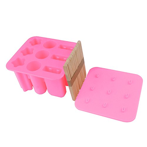 huazhanstore Silicone Ice Pop Molds, 9 of 3 Different Shapes Ice Pop Maker with 52 Wooden Sticks for Toddlers, Kids and Adults, BPA Free