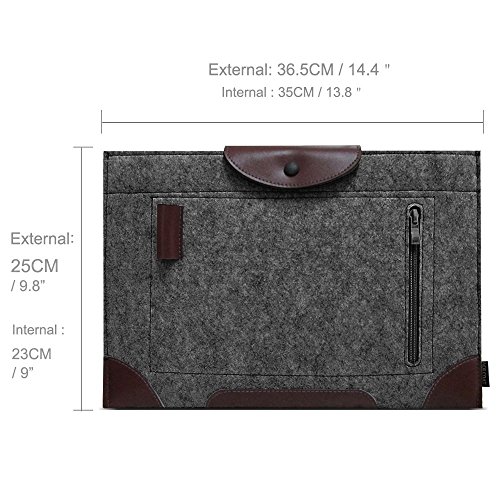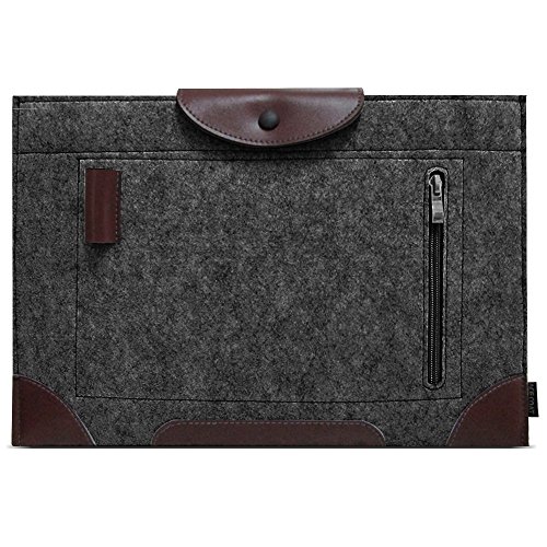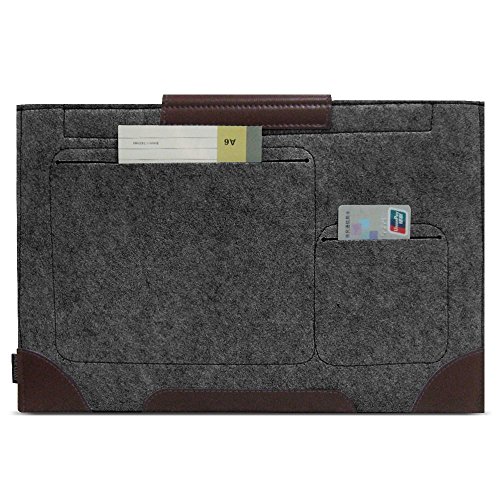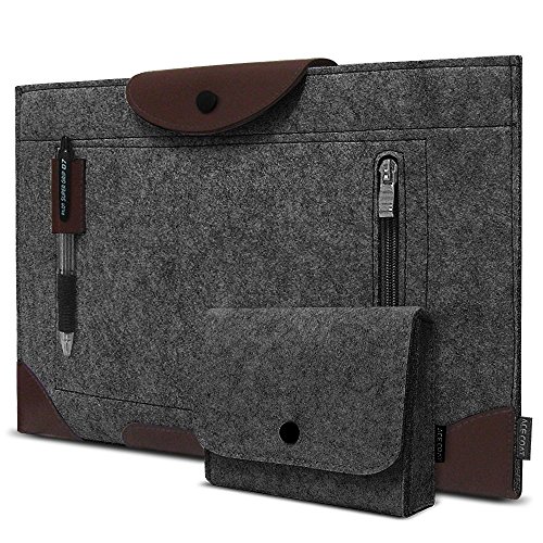 ACECOAT Felt 13.3 Inch MacBook Air / Retina Macbook Pro / 12.9 Inch iPad Pro / Surface Pro 4 & 3 Sleeve Case Cover 13 - 13.3 Inch Tablet Ultrabook Protective Case Pouch Bag With Pockets - Dark Gray