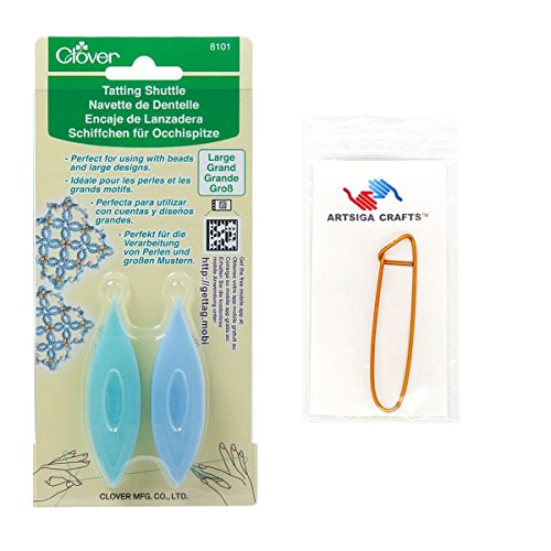 - Bundle includes 1 Clover Plastic Tatting Shuttles 2/Pkg-Large with 1 Artsiga Crafts Stitch Holder 8101