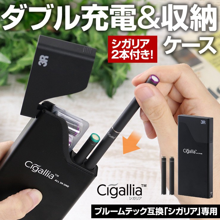 こちらはプルームテック互換機「Cigallia」の専用ケース兼、充電器です。お持ちのCigallia(電子タバコ)やカプセルを収納・充電できるケースです。さらに、今ならプラス500円でシガリアベーシックが2本付いてくる!●Cigalliaを2本同時に収納・充電できる!●カプセル1シートを収納できる!●スマホの電池切れに役立つ、モバイルバッテリー機能付き!デジキン