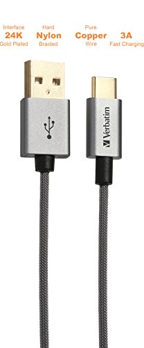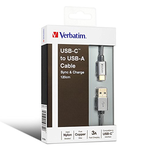 Verbatim USB-C to USB-A Cable Sync & Charge 3.9ft, Pure Copper Wire, Hard Nylon Braided, 3A Fast Charging, 1 year limited warranty (Grey)