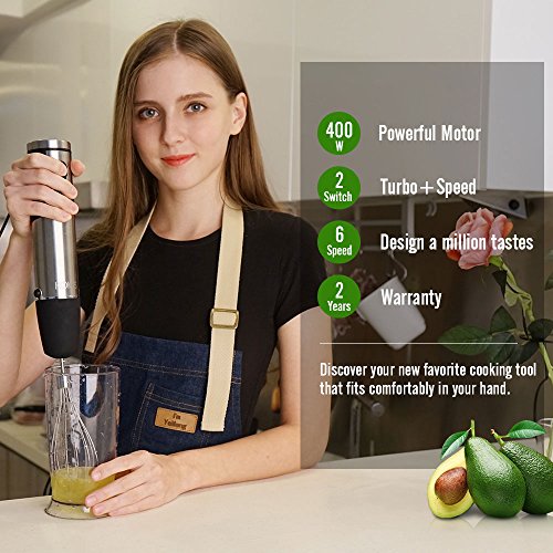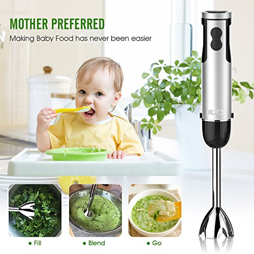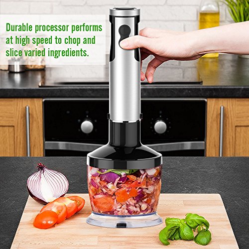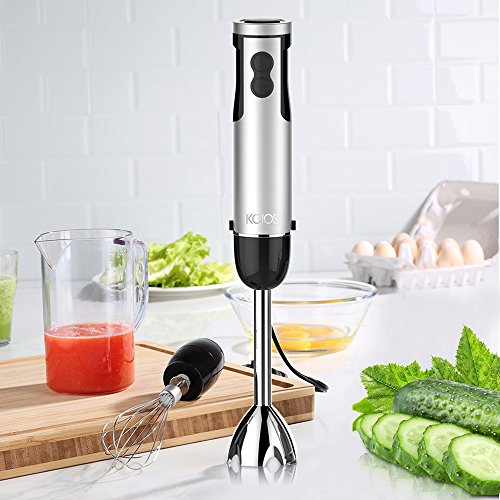 Looking for a high-powered hand blender that lets you blend, chop and puree ingredients on the fly? Hooray! With KOIOS's versatile new 4-in-1 hand Stick blender,you can easily, chop, blend, whisk, brush and crush even the toughest whole foods! Features: Change accessories with one simple click 6 Speed Variable Control and Turbo Powerful low noise 400-Watt motor Stainless steel S-shaped blade Ergonomic Soft-Grip Handle Dishwasher-safe Package: Whisk attachment Blending Shaft 500ml Chopper 600ml Beaker User Manual CookBook Use KOIOS Immersion Blender For: Beating eggs and whipped cream Making baby food and pancake batter Vinaigrette and dressings Chunky salsa and Smoothies Caution: Do not immerse the motor unit in water Blades are sharp. Handle carefully CookBook only as a reference 0 |