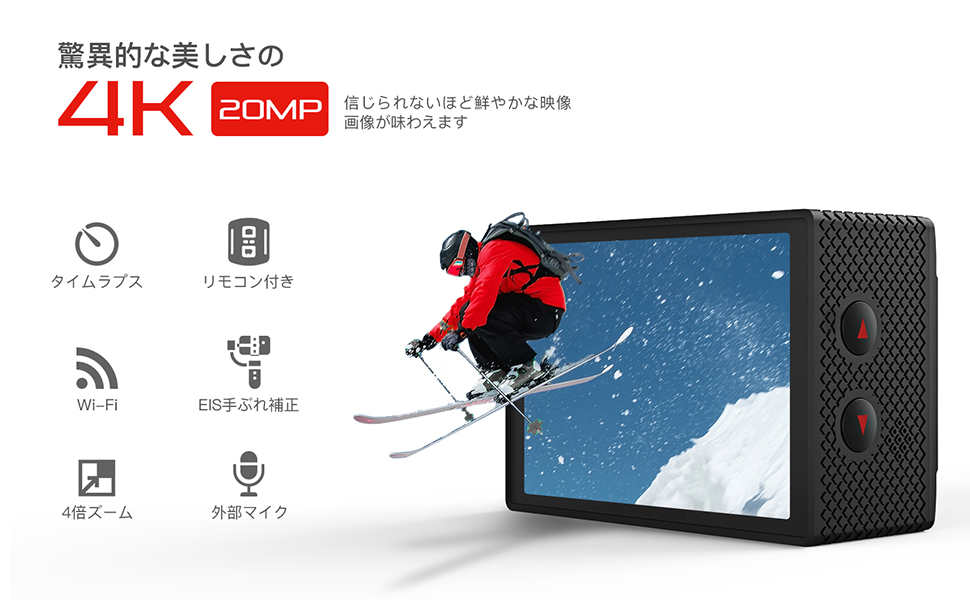 COOAUアクションカメラは4 K 30フレームの6軸EISの手ブレ補正機能を搭載しており、カメラの6つの自由度と12方向から検知して、デジタル画像の画面安定性を実現し、運動中での撮影に向けているプロ級のものです。登山中に身に付けて、または運行中の車、バイクに取り付けることで、より安定な映像記録を実現します。