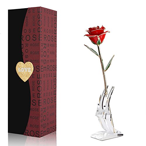 24k Gold Rose Flower,Best Romantic Gift For Christmas's Day, Valentine’S Day, Mother'S Day, Birthday Gift ,Anniversary Gift.24K Gold Dipped Long Stem Rose With Moon-Shape Stand By K_LUCKYI