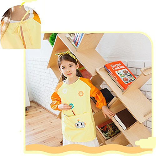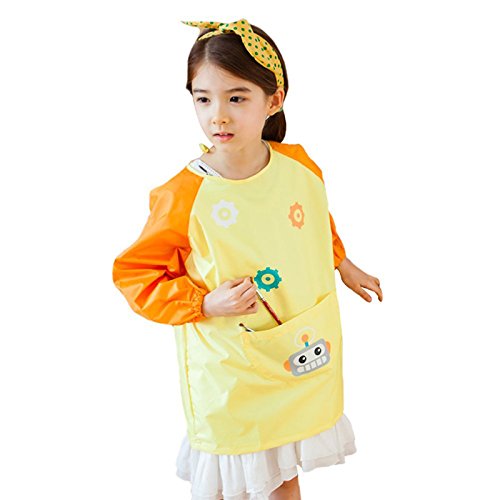 In front of the apron has a large pocket with a robot cartoon image, kids can hold paints, brushes, water pens and other tools