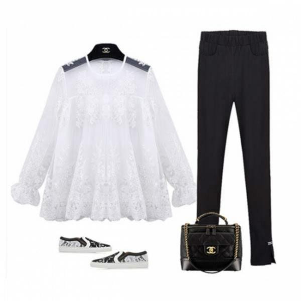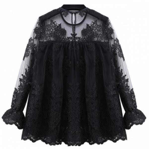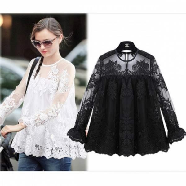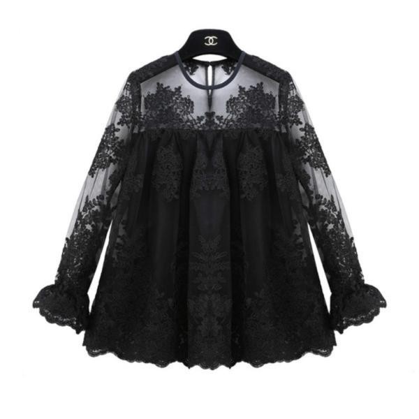 大人女子☆エレガント 刺繍レース Aライン シャツ カットソー ホワイト