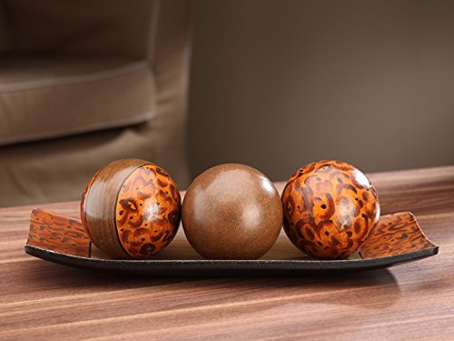 Hosley's Brown Decorative Tray and Orb/ball Set- 15" Long, Burlwood Style Finish. Ideal GIFT for Weddings, Party, Spa, Reiki, Meditation O9