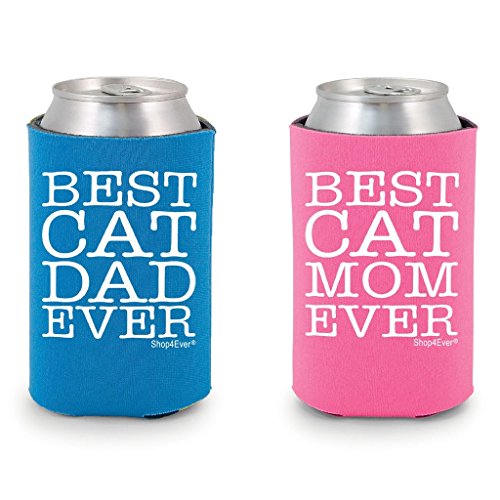 Shop4Ever Best Cat Dad Ever & Best Cat Mom Ever Can Coolie Couples Drink Coolers Coolies Blue-Pink