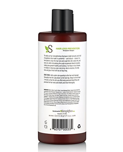 ANTI HAIR LOSS SHAMPOO COMBATS HAIR LOSS AND BREAKAGE: Simplifica hair loss shampoo is made from Moroccan Argan oil that is specially formulated to strengthen your hair. It reactivates dormant and dying hair follicles promoting hair growth and thickening thinning hair.
