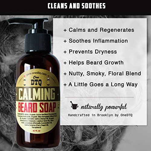 BEARD WASH - OneDTQ Calming 100% Natural & Organic Beard Soap - Leaves Hair Clean & Soft - 4.7 FL OZ