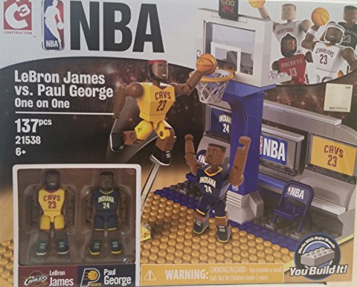 -. Binding : Toy -. Brand : The Bridge Direct -. EAN : 0885561215380 -. Feature : Build and Ball as with C3 NBA One on One Sets! / Buildable NBA playsets / Collectible construction figures! / Includes: 105 pcs, includes 2 figures, figure pose accessory, basketball accessories and Half Court Set -. IsAdultProduct : 0 -. Label : The Bridge Direct -. Manufacturer : The Bridge Direct -. Model : 21530 -. MPN : 21530 -. PackageQuantity : 1 -. PartNumber : 21530 -. ProductGroup : Toy -. ProductTypeName : TOYS_AND_GAMES -. Publisher : The Bridge Direct -. Studio : The Bridge Direct -. Title : The Bridge Direct NBA LeBron James vs. Paul George One on One Set -. UPC : 885561215380 -. Warranty : No Warranty