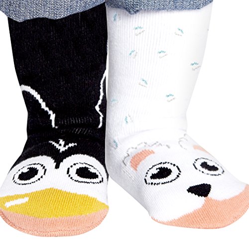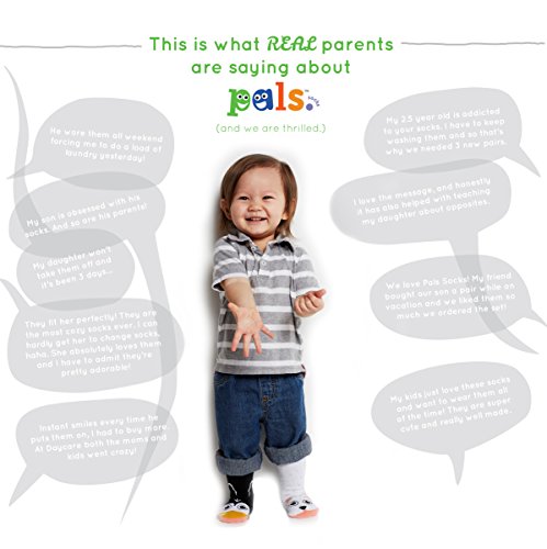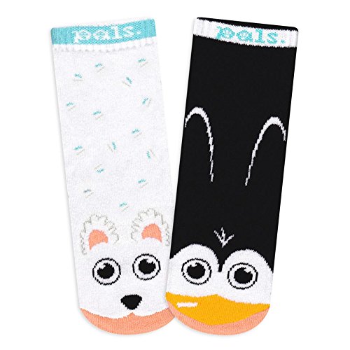 -. Binding : Apparel -. Brand : Pals Socks -. Color : White, Black -. Department : boys -. EAN : 0893314002651 -. Feature : POSITIVE MESSAGE: Pals Socks are purposely mismatched to start the conversation with kids about making different kinds of friends and trying new things / SIZING: Sized not by shoe size, but age - fits most kids feet ages 1-3 years old. Heel to toe measurement is 3.75" / QUALITY: These are thicker than your average socks. A thicker sock means you wont get the dreaded toe or heel hole / PREVENTS SLIPPING: Pals Socks have nonskid grippers to prevent slipping on slippery hardwood floors / KIDS LOVE 'EM: Fun bright colors, soft and stretchy! -. ProductGroup : Apparel -. ProductTypeName : SOCKSHOSIERY -. Size : 1-3 Years old -. Title : Polar Bear and Penguin Kids Toddler Mismatched Friends Grip Socks -. UPC : 893314002651