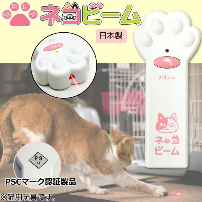 | 猫用玩具として開発されたレーザーポインターです。レーザー光を照射すると、猫ジャラシのように喜んで猫がレーザー光を追いかけまわします。猫のお世話をしている方(猫がなついている方)がご使用ください。 |