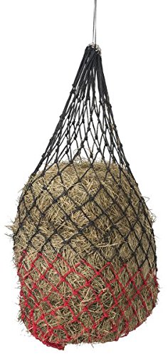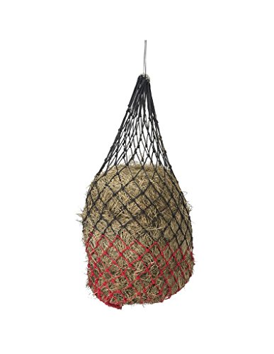 Studio : JT International Publisher : JT International Binding : Misc. Product Description Tough-1 Slow Feed Hay Net This knotted-style hay net has convenient large capacity to hold up to a half bale of hay. A 2 x 2-inch opening means horses will eat slower, aiding in digestion and decreasing waste. Features: Slow feed aids in horse digestion Holds half bale of hay Item Specifications: Size: 42"L Material: Polyester 0