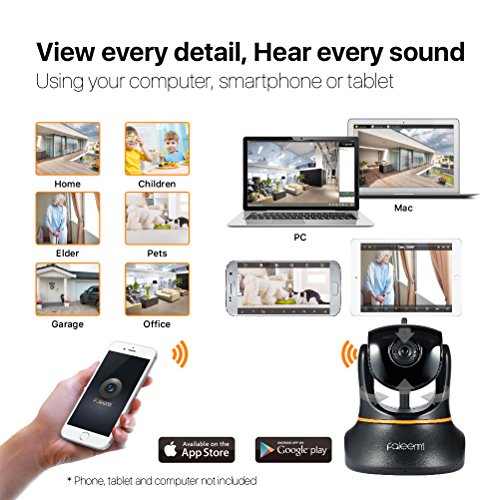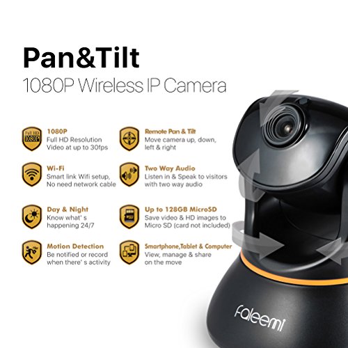 Faleemi 1080P Full HD WiFi IP Security Surveillance Camera, for Baby/Elder/ Pet/Nanny/Garage/Office Monitor, Plug/Play, Pan/Tilt Control, Two-Way Audio & Night Vision FSC880