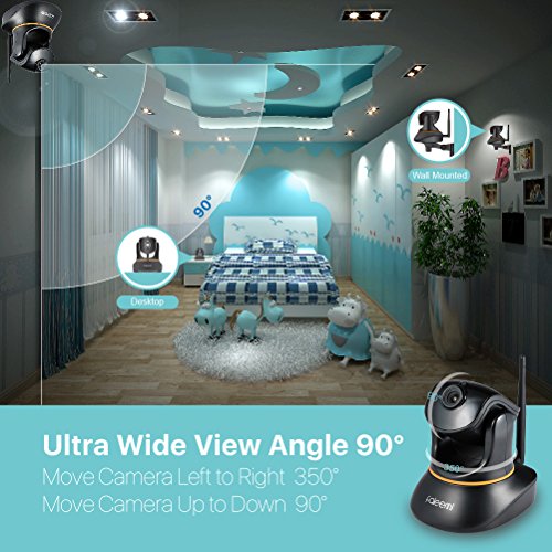 Super Wide 90 degree Viewing Angle, Remote Pan/Tilt (Horizontal 350 degree and Vertical 90 degree), and IR LED for 24 Hours Monitoring, Night Vision Up to 26 feet.