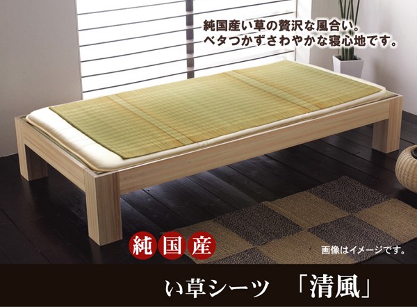【商品名】 純国産 い草のシーツ(寝ござ) 『清風』 ブルー シングル約88×180cm 【ジャンル・特徴】 イ草 いぐさ イグサ 冷感 ひんやりマット ■サイズ・色違い・関連商品■88×180cm ベージュ■88×180cm ブルー[当ページ]関連商品の検索結果一覧はこちら 国産(九州産)のい草を使用したネゴザ(寝ござ)です。一本一本が太く、表皮が厚く繊維がキメ細かいので、弾力性があり、耐久性に優れています。い草には1.綿の約3倍の吸湿性があり汗のじめじめを軽減します。2.湿度の調整作用があり、蒸れにくく快適な就寝を促します。3.汗のにおいの元となる化学物質を90%以上抑え、においを軽減します。などの効果があります。い草に青森ヒバ加工を施しています。(抗菌・防臭効果)■商品スペック【サイズ】約88×180cm【原産国】:日本製(純国産)【素材】:い草(九州産) ※大目織 【特記事項】画像のカラー・サイズ・セット内容とは異なる場合がございます。商品名のカラー・サイズ・セット内容をご確認下さい。【配送日時指定について】・この商品は、配送希望日と時間帯をご指定可能です。・配送希望日は出荷