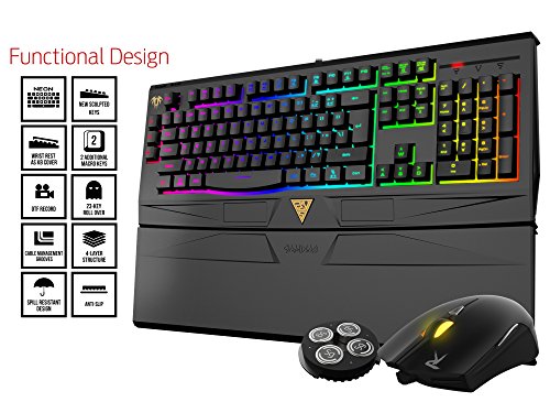 The ARES 7 Color Combo Keyboard features a Premium Micro-Processor, 4-Layer Structure. 7 color (spectrum) backlighting, 4 brightness levels and adjustable breathing frequency, WASD – Arrow Keys Exchange Mode, ALL-Keys Lock Mode, Spill Resistant Design, On the fly (OTF) macro recording with 3 Programmable macro keys. Game Mode (Windows key disable), Multimedia function keys and wrist supported palm rest. The OUREA FPS Optical Gaming Mouse features a premium microprocessor, selectable 400/1600/3200/4000 DPI, 8 million click lifecycle, Weight system and ambidextrous design.Feature