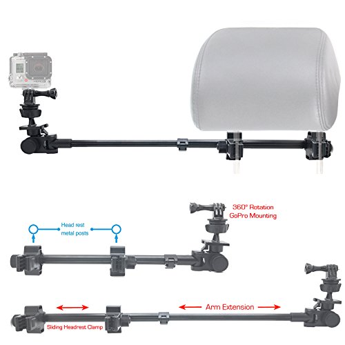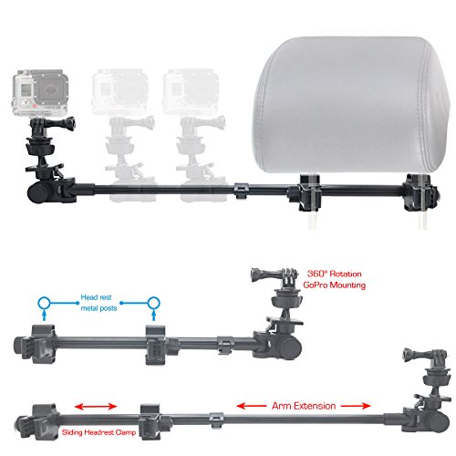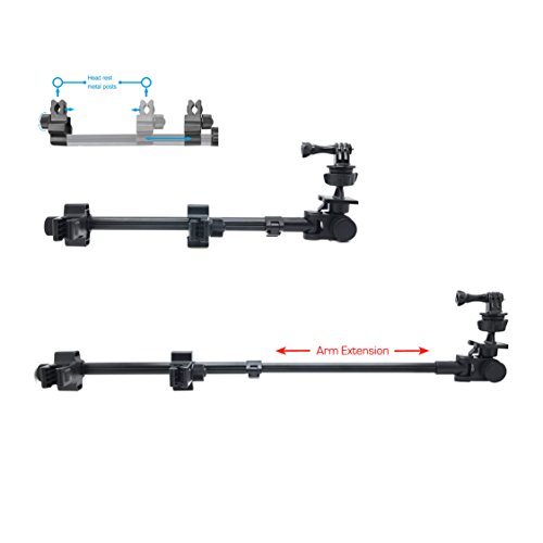 Best Value Telescopic Headrest Mount GOPRO Hero6 Hero5 Hero4 Hero3+ Hero 4 3 2 heardrest mount in the market (Arm can slide from 13inch to 21inch)