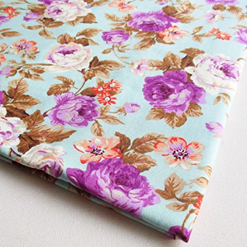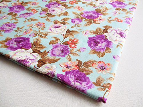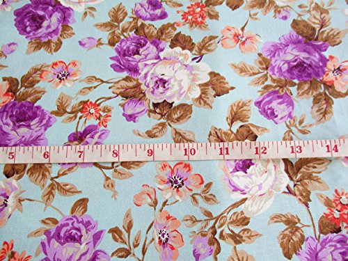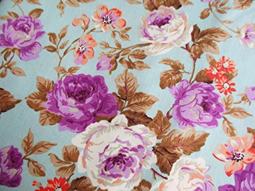 Vintage Lilac Rose, Violet Rose bouquet on sky blue 36 by 36-Inch Wide (1 Yard) (CT599)