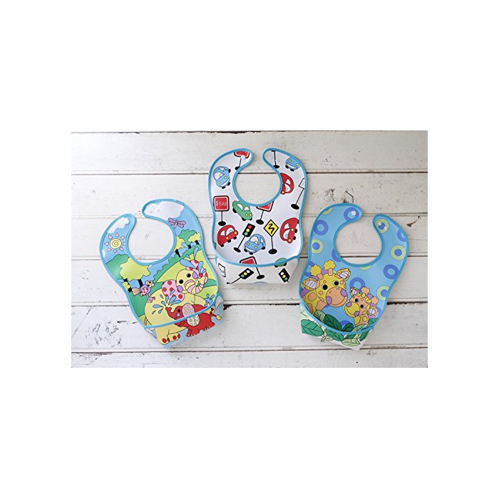 포켓부 식사 에이프런 / 방수 스타이(유아용 턱받이) 《비부》 3매 세트
