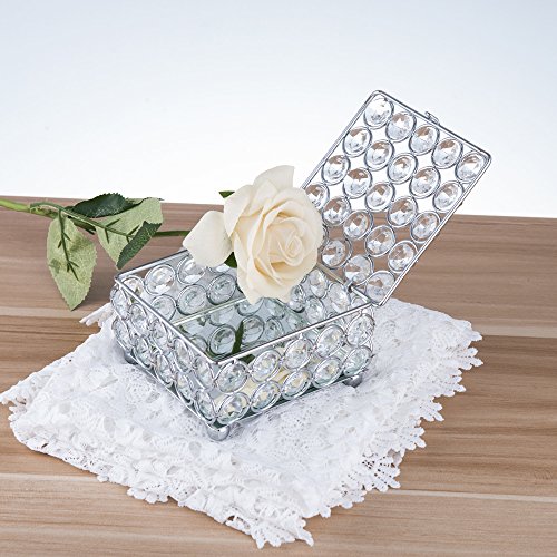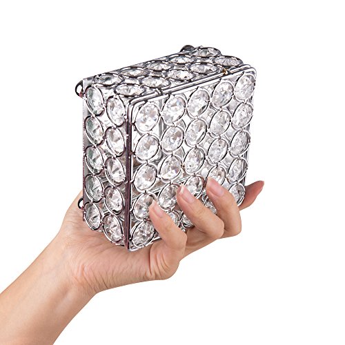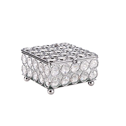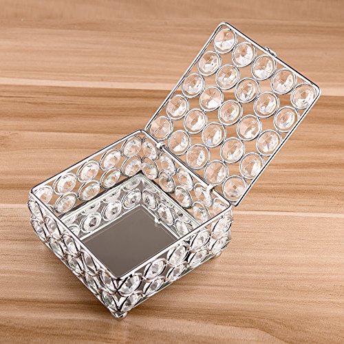 -. Title : Feyarl Crystal Jewelry Box Beads Trinket Organizer with Mirrored Inside (Silver)