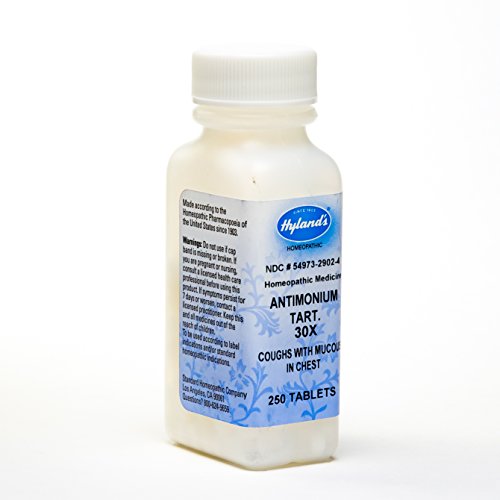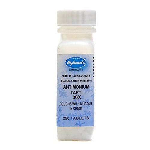 Hyland's Antimonium Tart. 30X Tablets, Natural Relief of Coughs With Mucous in Chest, 250 Count Temporary Relief of Coughs with Mucus in Chest NATURAL REMEDIES SINCE 1903? Hyland’s has been producing homeopathic medicines since 1903. Made with natural ingredients and made in the United States. Hyland’s products contain no artificial flavors, dyes or parabens. This product works to stimulate the body’s own natural healing process. FDA COMPLIANT MANUFACURING Always read and follow the label directions when using Hyland's products. The uses for our products are based on traditional homeopathic practice. Hyland’s products follow the manufacturing and quality practices outlined in the Homeopathic Pharmacopoeia of the United States. Hyland’s operates in full compliance with the FDA standards for manufacturing, safety and labeling. Hyland's products have not been reviewed by the Food and Drug Administration. All ingredients are tested upon receipt to ensure potency and safety. Hyland’s Facilities use the most up-to-date equipment and environment to guarantee purity and quality. SAFE AND RELIABLE Homeopathy is a safe effective system of medicine with fundamental principles for selection, application and manufacture. Homeopathy’s potency preparations (6X, 30X, 30C) make dosing safe and stimulating to the body’s own healing properties. Hyland’s quick-dissolving sublingual tablets are safe, effective and completely free of Aspirin, Acetaminophen or Ibuprofen. Homeopathic preparations dilute and invigorate the source, making doses non-toxic and safe to take alongside other medications without contraindications or known side effects. 0 |