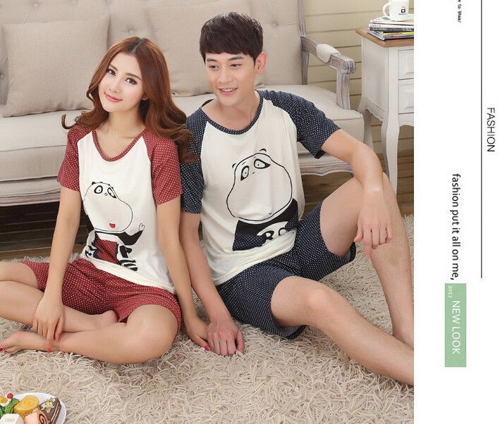 New Design !! Men Women Summer Lovers Night Dress Sleepwear Couple Pyjamas Pyjamas Cotton Short Sleeved