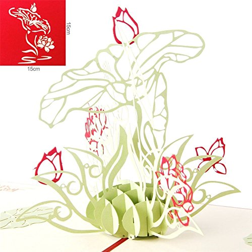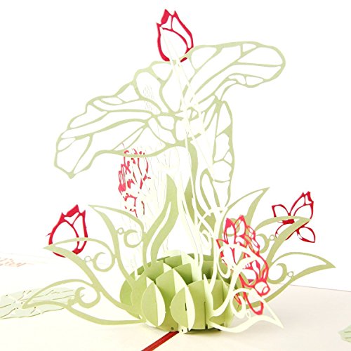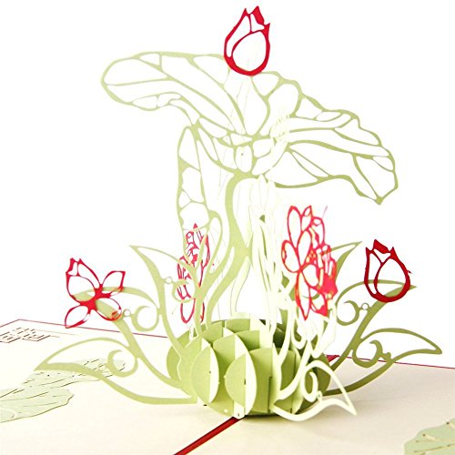 Lotus Flower Handmade 3D Pop Up Thank You Greeting Cards for Birthday Mother Day Christmas