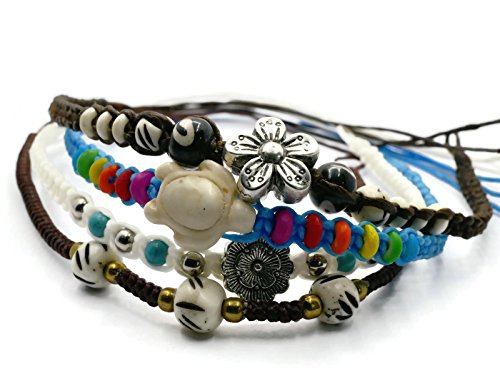 -. Feature : Set of 4, Reggae Style Macrame Wax Cotton Cord Casual Wear Bracelet or Anklet for Unisex / Material: Alloy, Beads and Waxed Cotton Cord / Approx Size: 10" - 11" Length (Example for how to tie bracelet/anklet knot to your wrist/ankle as show in the last photo) / Comfortable to wear, Free Size, Adjustable Bracelet / anklet / These items are handmade, maybe a little different from show in the pictures. (Included beads screen, color tone, depend on raw material)