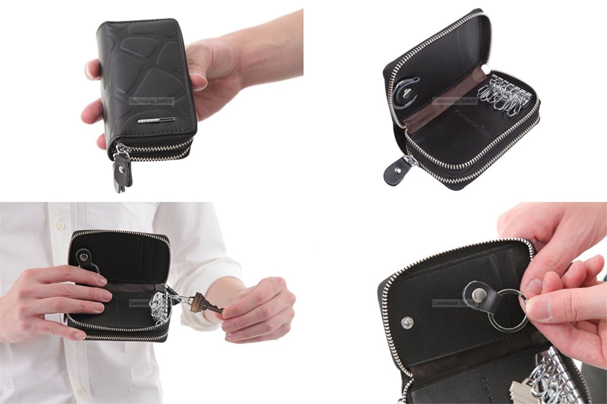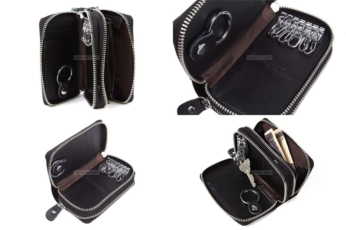 Two fasteners with six key hooks and a total of three pockets (one of which has 2 room structure), storage capacity preeminent cowhide made smart key case.